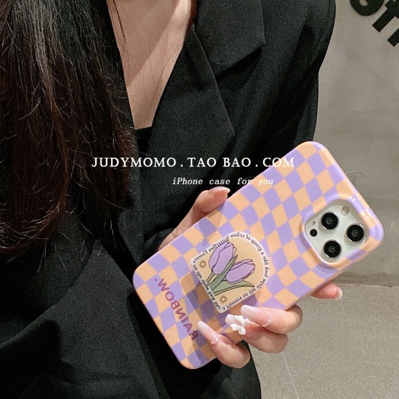 ins風穏やかな格子チューリップブラケットに適した携帯電話シェルxsmaxアンチドロップxr7 かわいい MOMO53368727777
