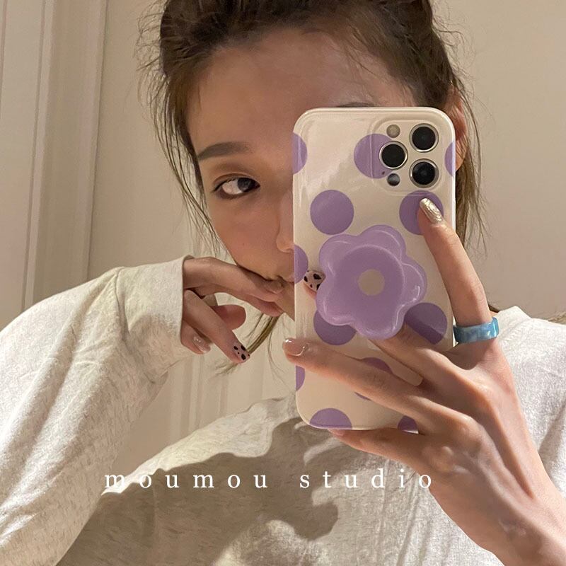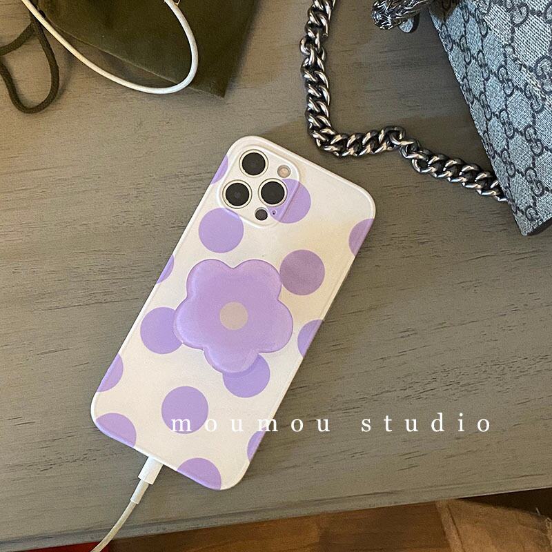 ビッグウェーブポイントパープルフラワーに適した携帯電話ケース12promaxシリコンスリーブ7p / 8pブラケット フラワーデザイン かわいいA MOMO_A88687036877