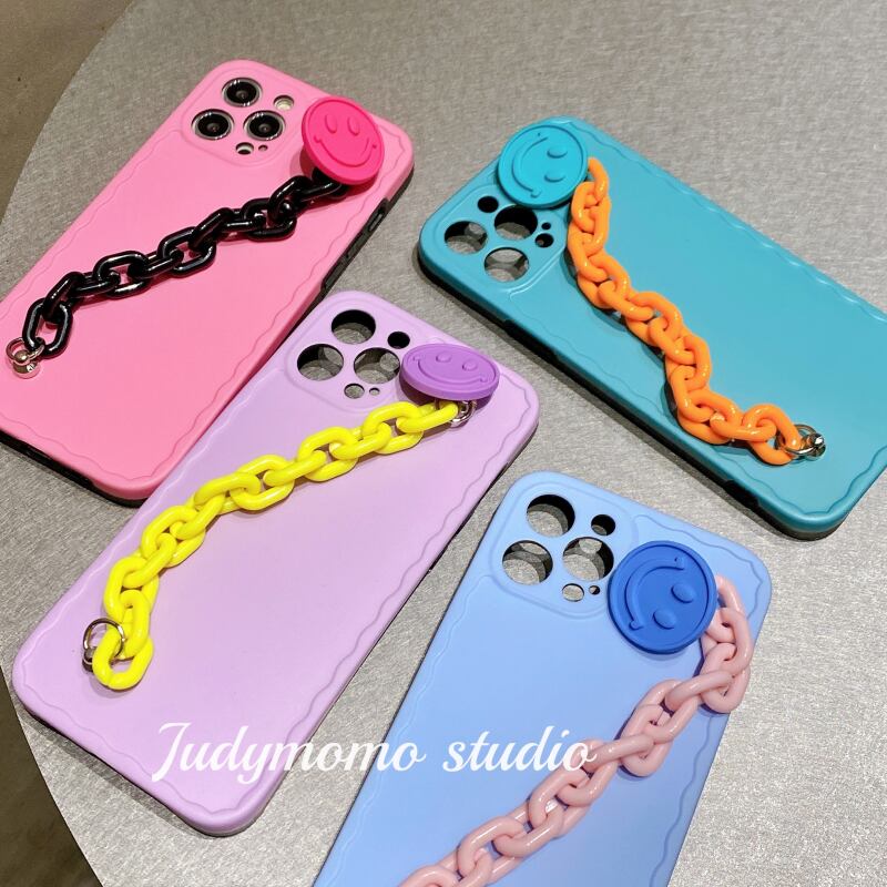と韓国のスマイリーフェイスチェーンローズピンクiPhone12promaxアップルxs携帯電話ケース11シリコンxr / 7p iphoneケース かわいい MOMO90793001316