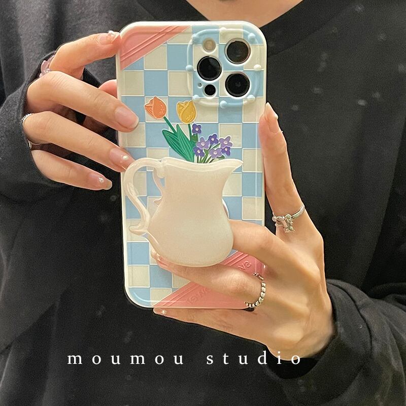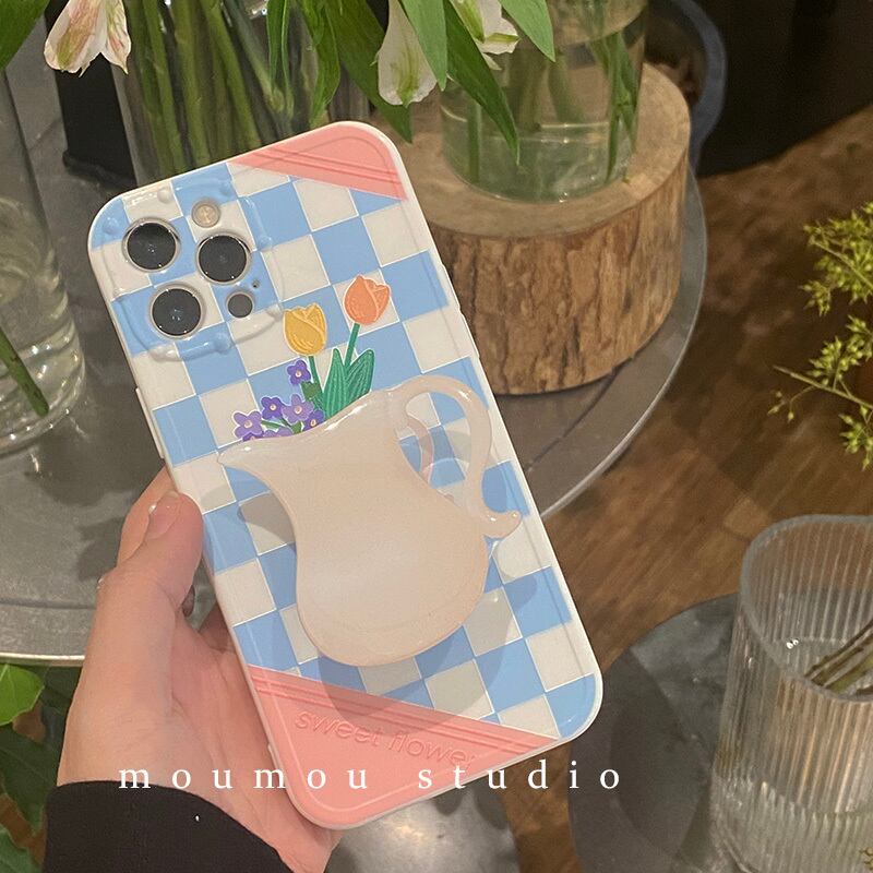 花瓶透明に適した携帯電話ケース12promaxシリコンスリーブ8pブラケット フラワーデザイン かわいいA MOMO_A11261541764