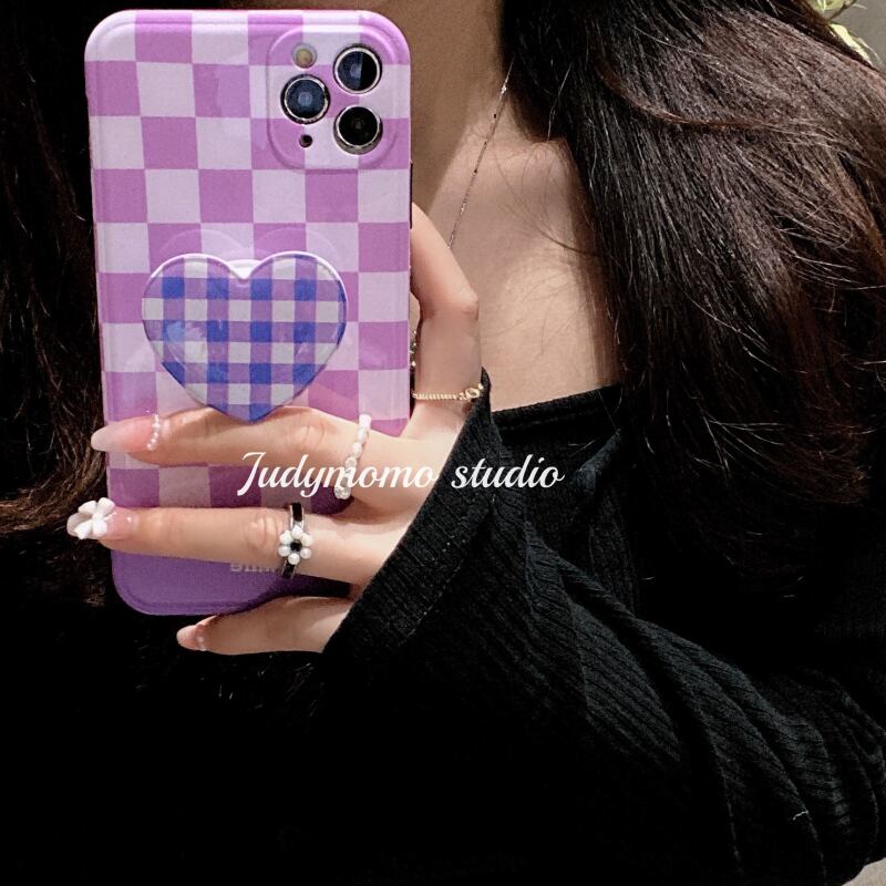 ins韓国パープルチェック柄風に適したiPhone11promax Apple12シリコンフォンケースxs / xr Soft 7 かわいい MOMO33534209605