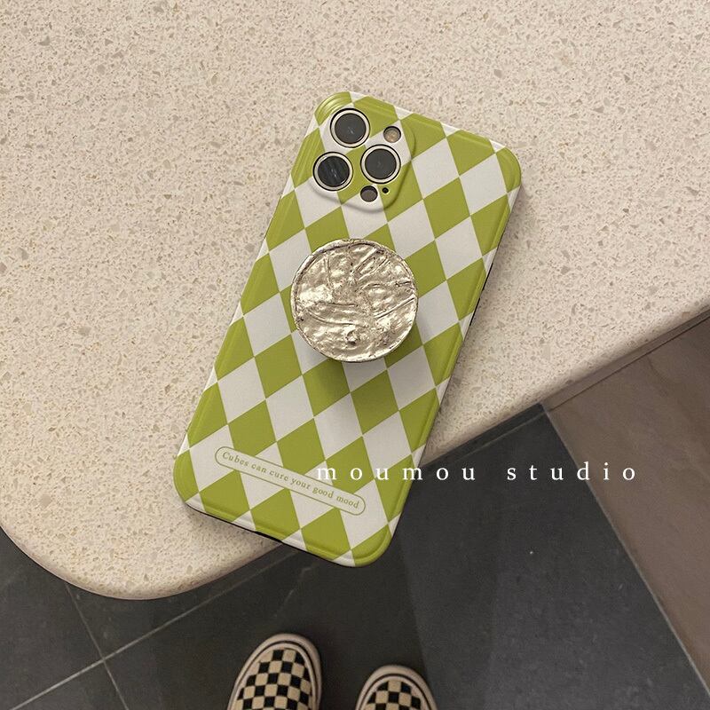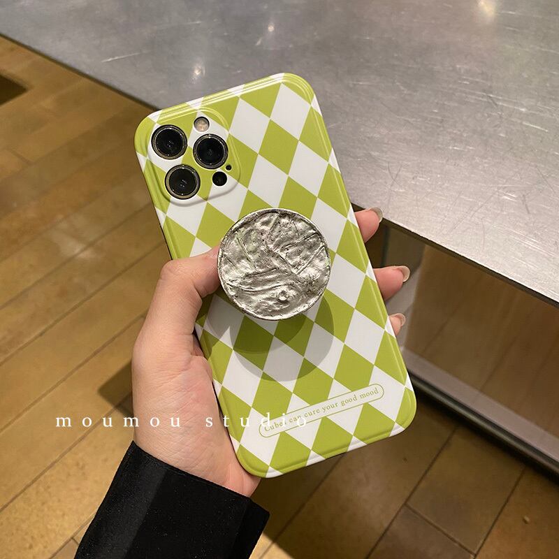 韓国グリッドメタルラウンドIPHONEケース12promaxシリコンスリーブ8pブラケット 韓国ファッション かわいいA MOMO_A85528195828