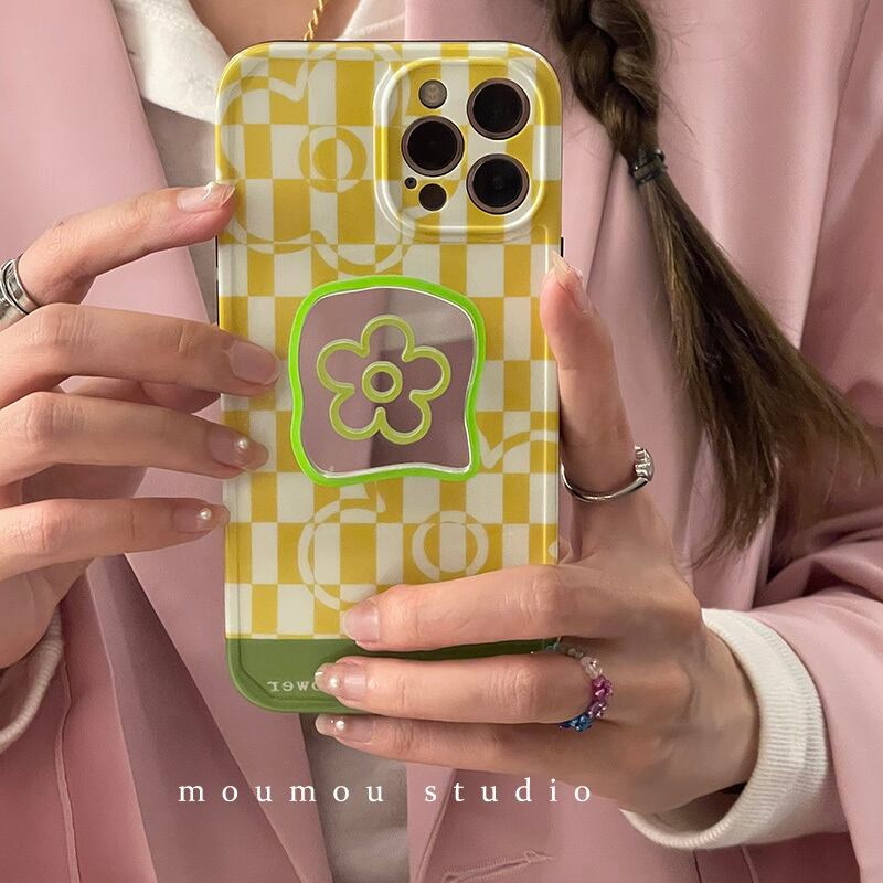 シンプルなミラーフラワーに適した携帯電話ケース12promaxシリコンスリーブ8pブラケット フラワーデザイン かわいいA MOMO_A89534225370
