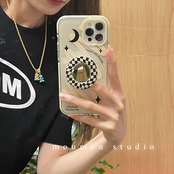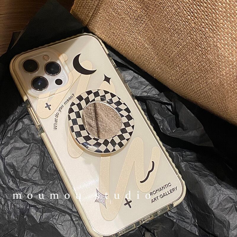 シンプルなラティスミラー携帯電話ケース12promaxシリコンスリーブ8pブラケット かわいいA MOMO_A51758759052