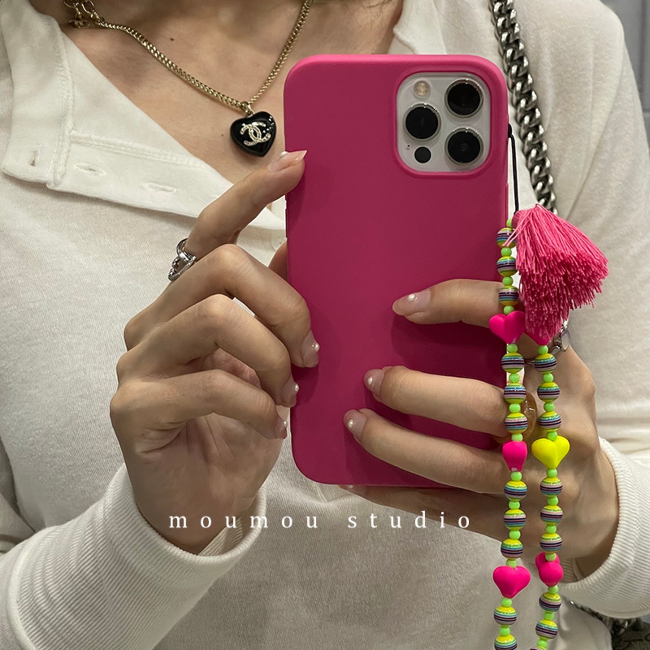 ビーズ カラースリーブチェーン ピュア iphoneケース かわいいA MOMO_A86926784471