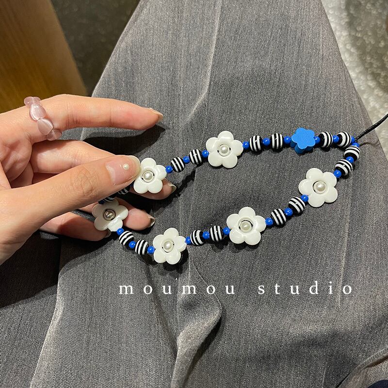 色:12白い花と青いビーズの横縞,電話ケースなし