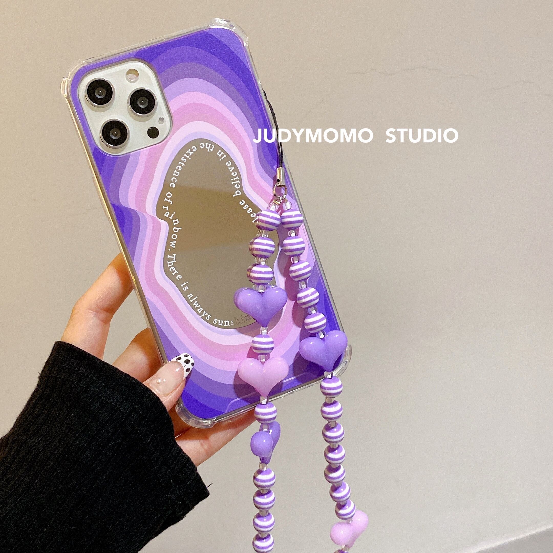insパープルマジックミラーチェーン付きiPhone12アップル11promax携帯電話ケースxrミラーxs かわいい MOMO95534052464