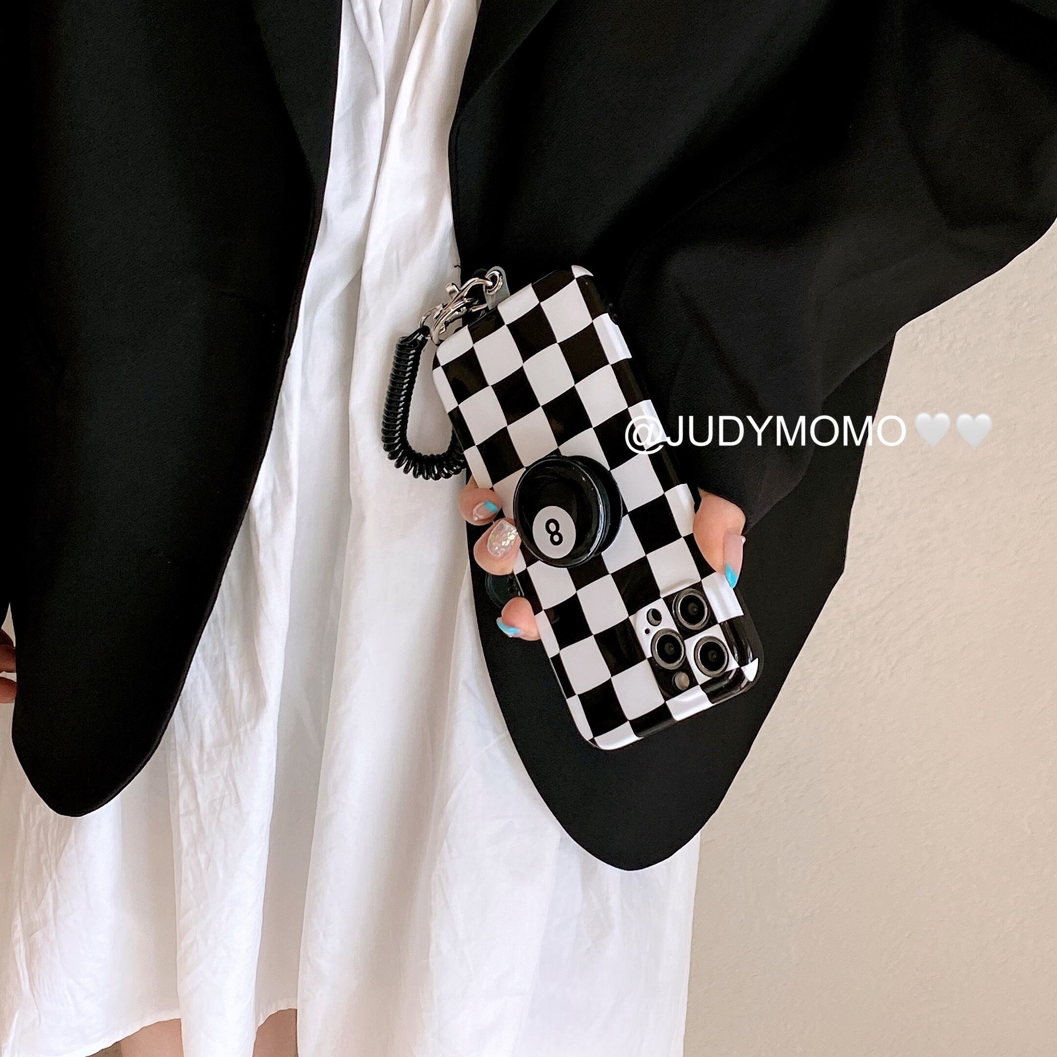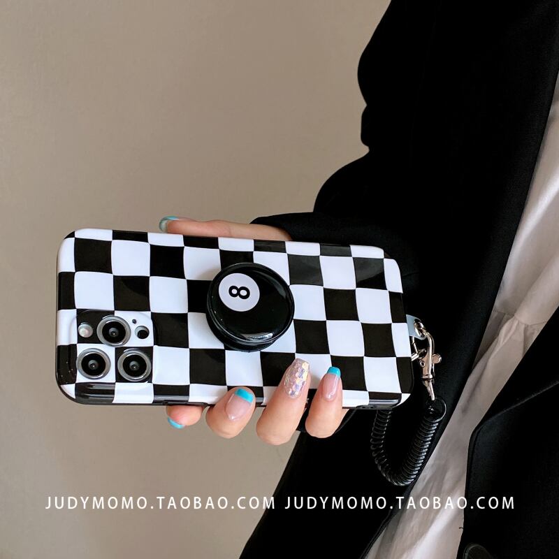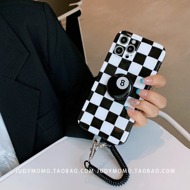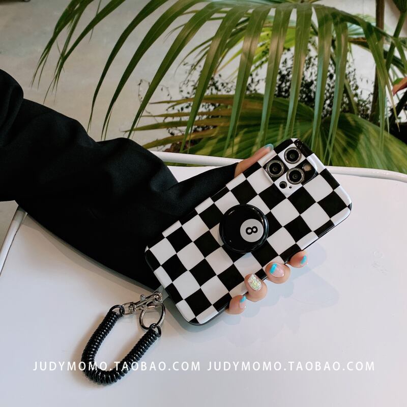 レトロなチェッカーボードの黒と白に適したApple12promax携帯電話シェルスプリングストラップiPhone11オールインクルーシブxr7 ホワイト ブラック 春物 かわいい MOMO80269249188