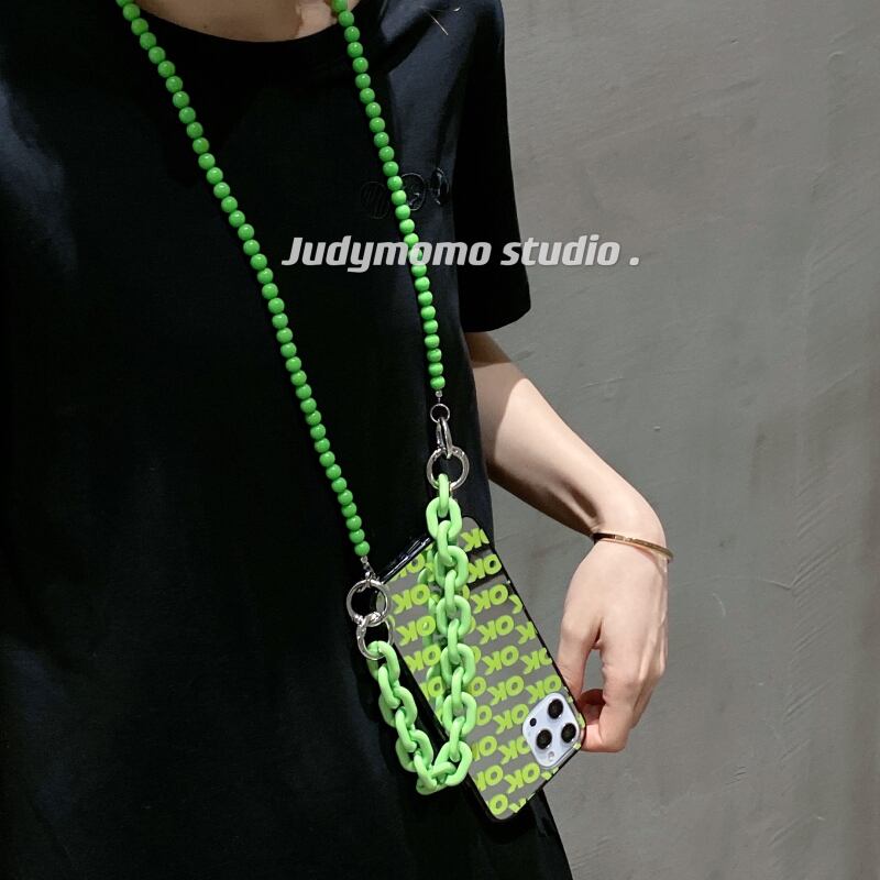 できる緑のクロスボディビーズチェーンiphone12promax apple11携帯電話ケースxr / 7 / xs グリーン かわいい MOMO74705403463