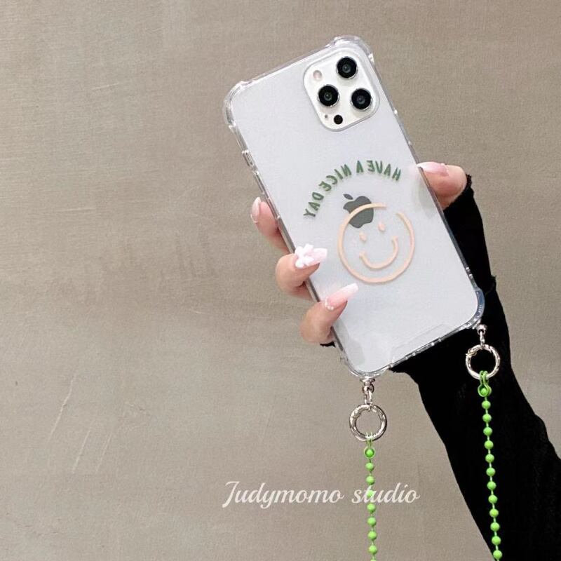 insミニマリストスマイリーフェイスメッセンジャーチェーングリーンiPhone11携帯電話ケースxrアップル12promaxソフトxs / 8 かわいい MOMO29541050448
