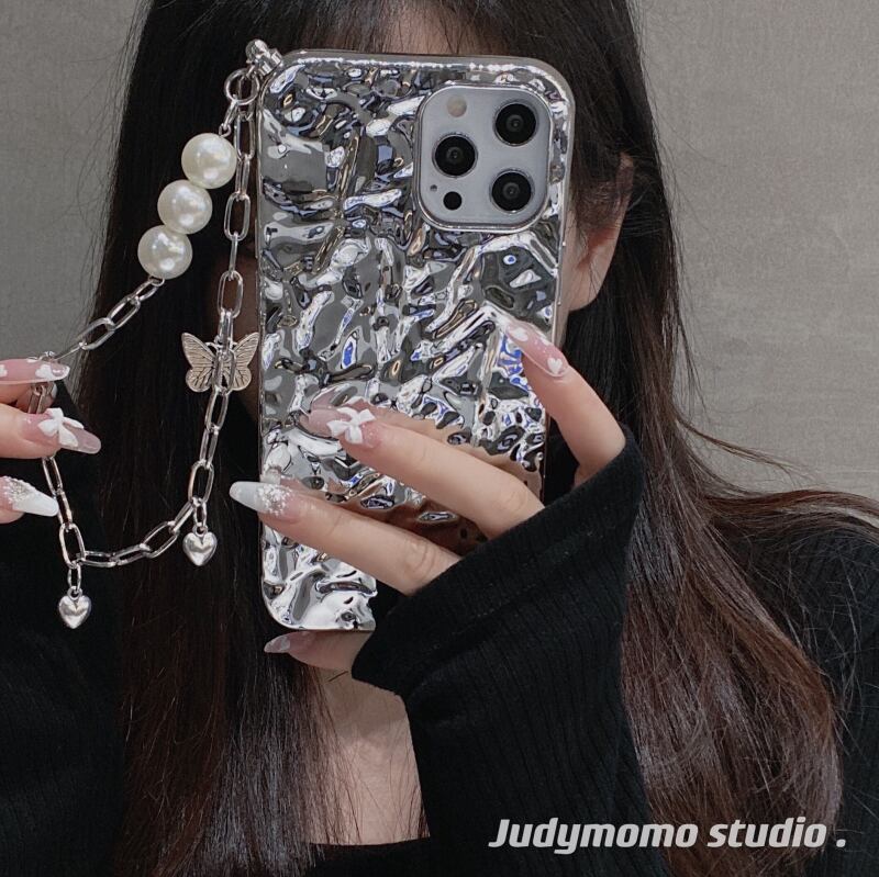 insコールドスウィートクールウィンド細いチェーンiPhone11promaxアップル12シルバーブリキ箔電話ケースxr / 8 大人ガーリー キュート カジュアル 銀 かわいい MOMO44414479134