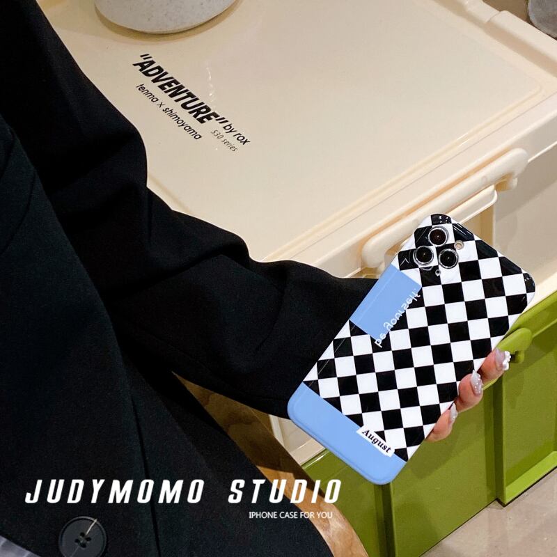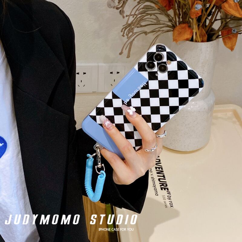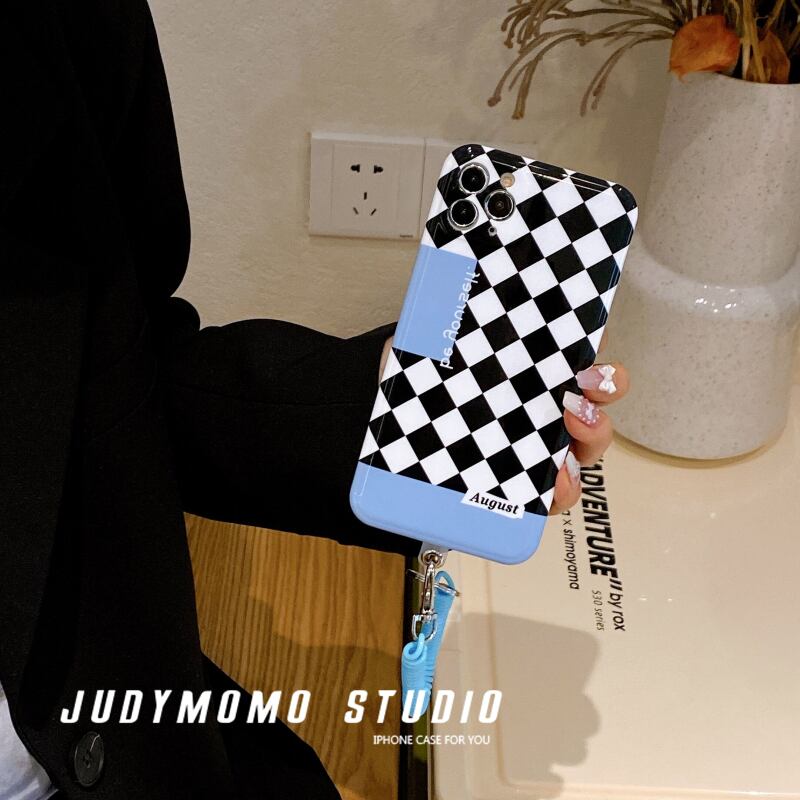 ins自家製ベビーブルーチェッカーボードに適したiPhone12promax携帯電話ケース11アップルxr / 7pソフト NEW iphoneケース かわいい MOMO60788500392
