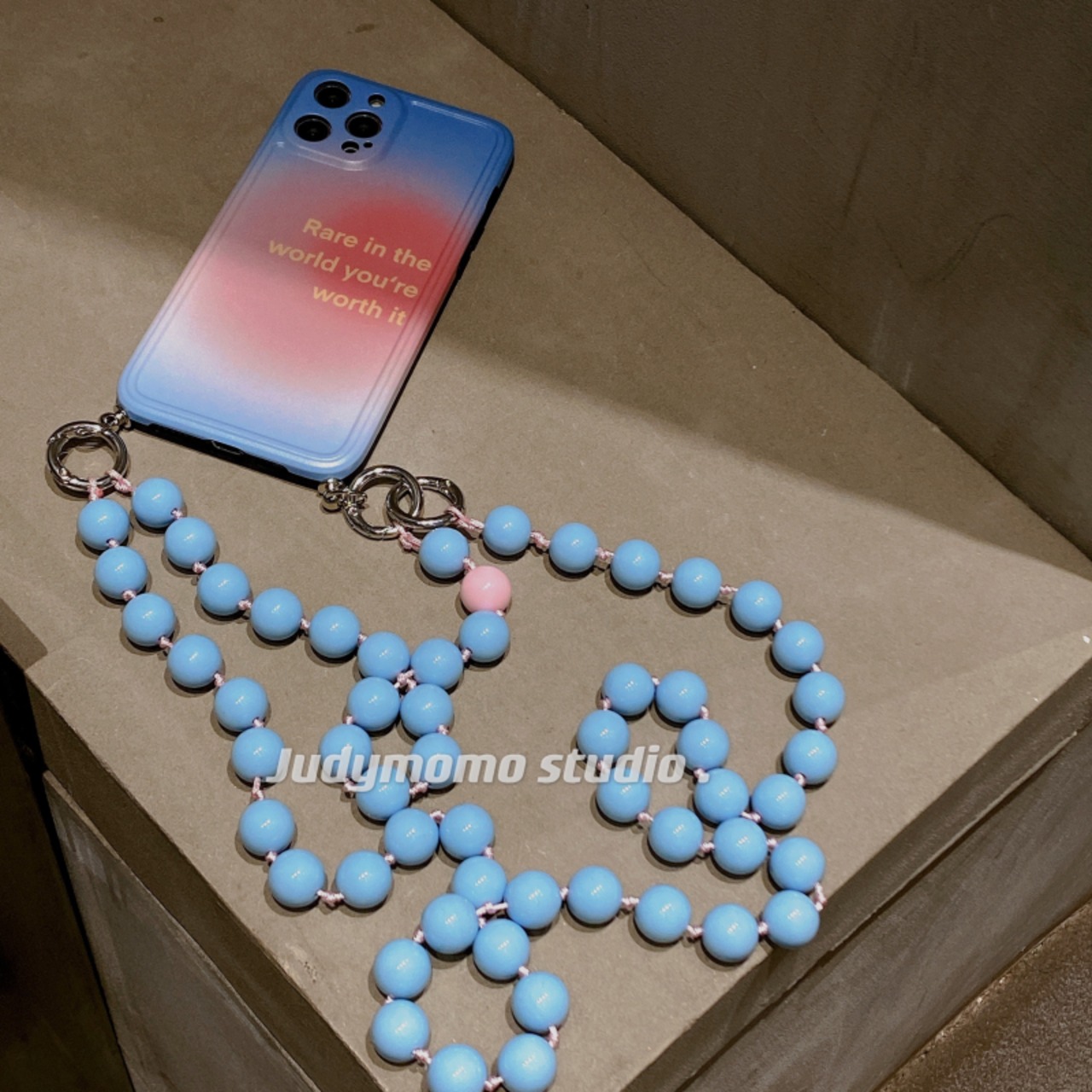 ニッチなファッショナブルなライトブルーのビーズチェーンiPhone11promax Apple12は斜めの携帯電話ケースxr7にすることができます かわいい MOMO13255089548