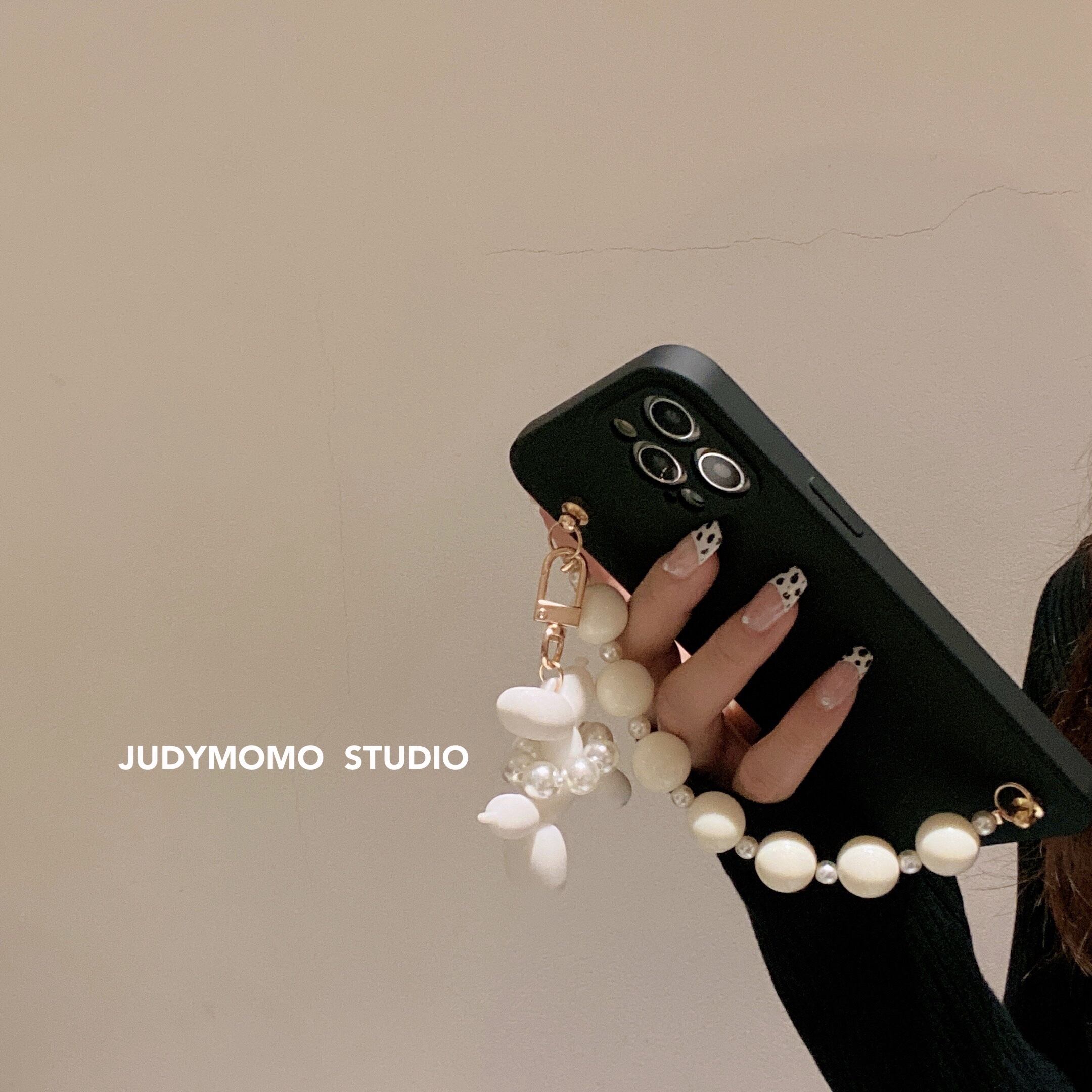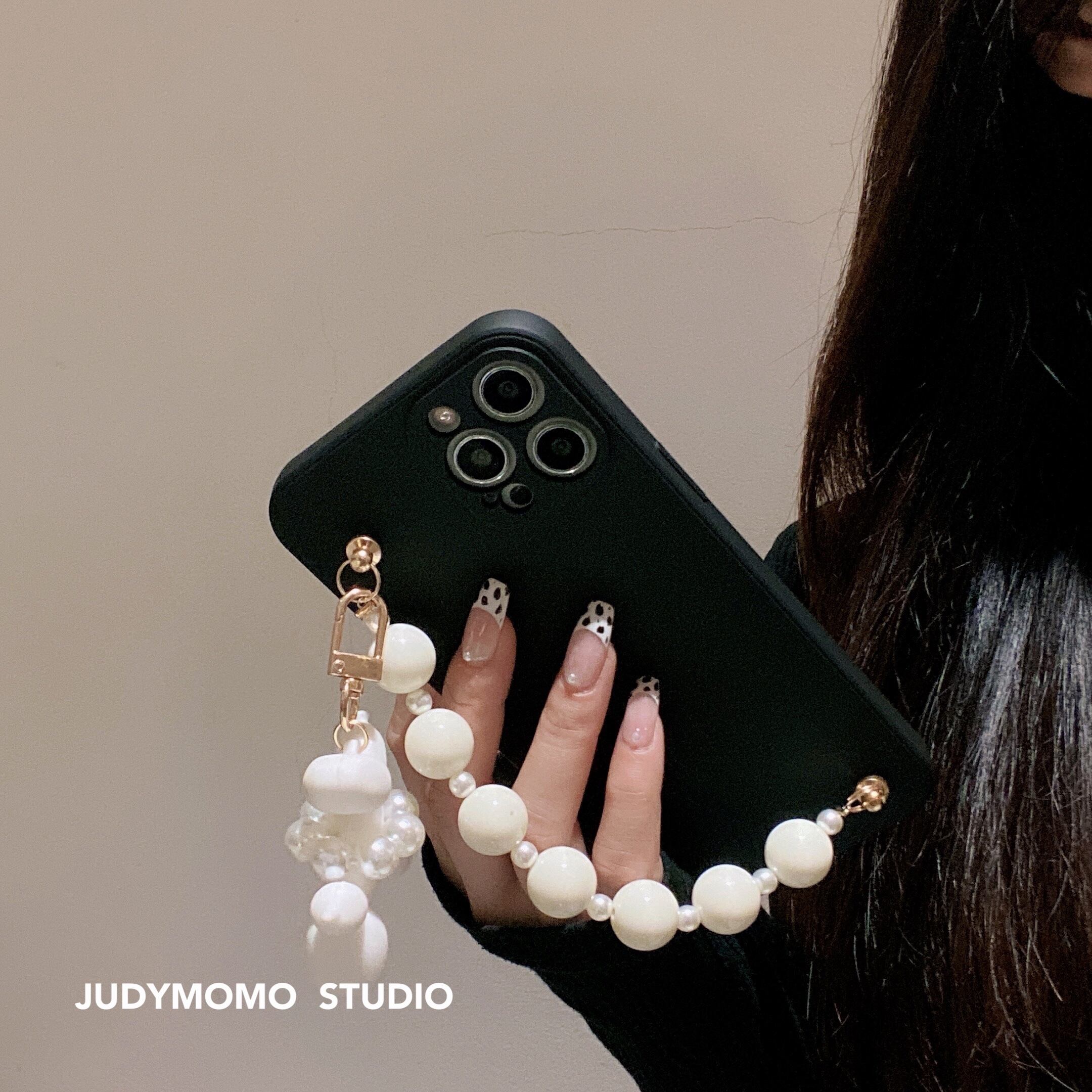 かわいいパールブラックバルーンドッグチェーン携帯電話ケースiPhone11アップルXSマックスアンチドロップ12プロソフト7 大人ガーリー スウィート キュート カジュアル 真珠 iphoneケース かわいい MOMO99936967052