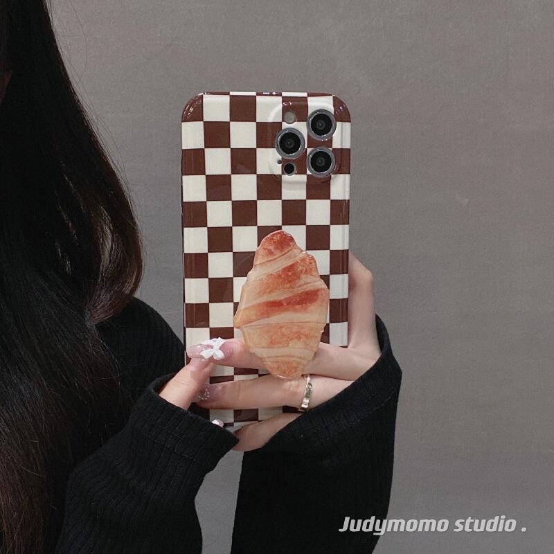 insクリエイティブクロワッサンブラケットに適したiphone12promaxアップル11ブラウンラティス携帯電話シェルxrソフト8p かわいい MOMO91475998591