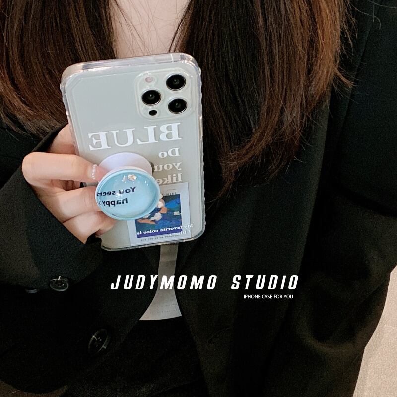 insシンプルなニッチBLUE英語ブラケットに適したpromax携帯電話シェル78pシリコン ブルー かわいい MOMO22149224487