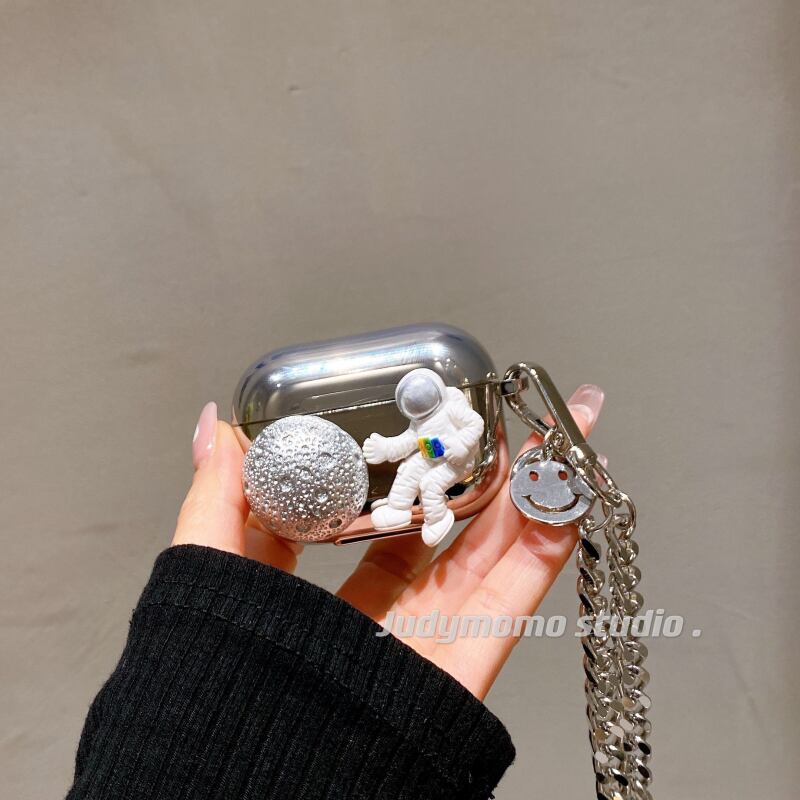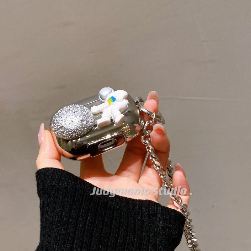 insニッチステレオ宇宙飛行士に適したエアポッドAppleBluetoothヘッドセットセット電気メッキシルバーチェーン第3世代ソフトシェルx ブルー 銀 NEW かわいい MOMO26670514055