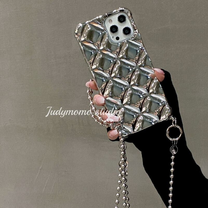 ins電気メッキシルバーロンバスに適したiphone12promax携帯電話ケースメッセンジャーチェーンxrアップル11アンチフォール8 銀 NEW iphoneケース かわいい MOMO15924701659