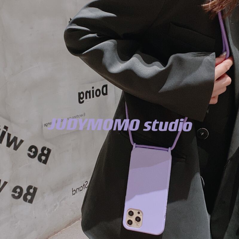 シンプルなライトパープルストラップメッセンジャーに適したiphone11promaxアップル12携帯電話シェルxr / xs / 78pソフト かわいい MOMO34374626912