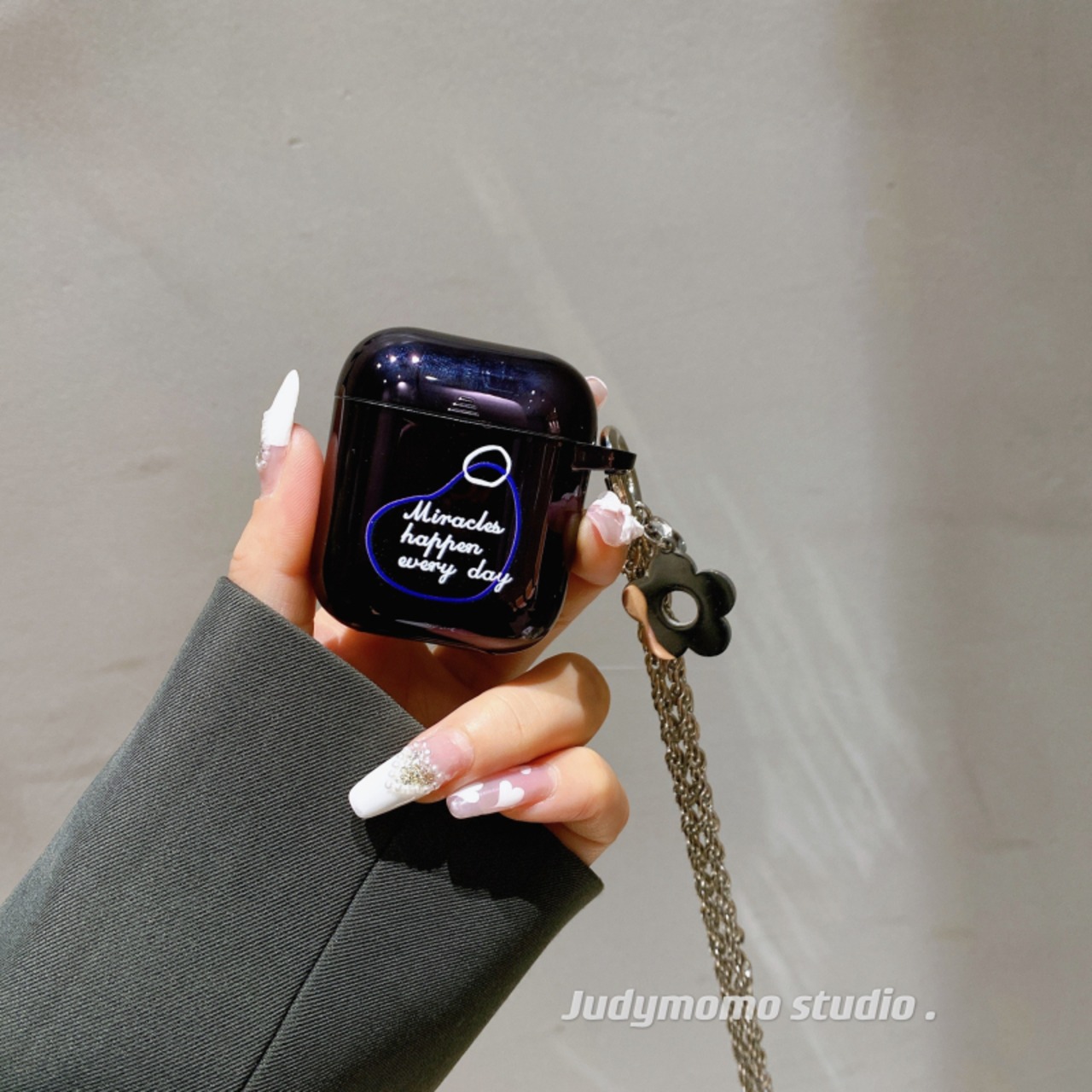 ニッチなデザインのハンギングネックチェーン電気メッキラインに適したエアポッドAppleBluetoothヘッドセット保護スリーブソフト ブルー かわいい MOMO82157353398