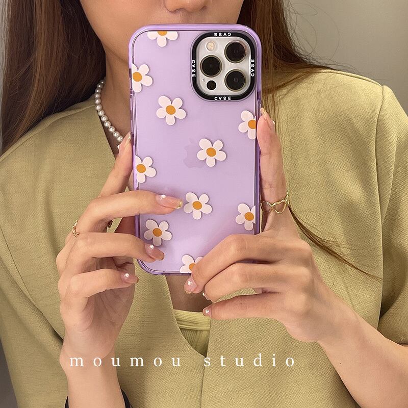 と韓国の紫色の花に適した携帯電話ケース12promaxシリコンスリーブ8pフレーム フラワーデザイン パープル かわいいA MOMO_A77622119379