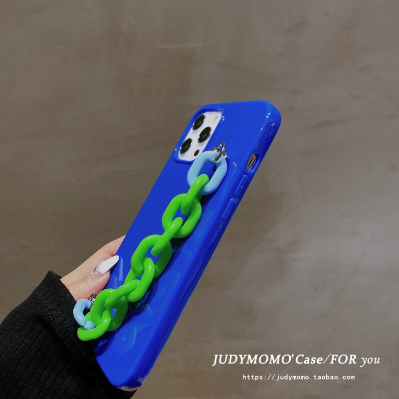 スモールヒットカラーチェーンブルーシェルiphone12promax iphone11携帯電話シェルxr / 78pシリコンX iphoneケース かわいい MOMO55168390436