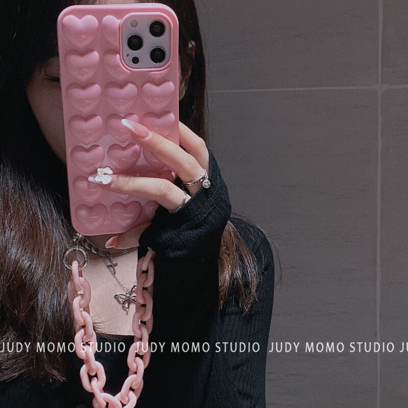 ピンクピンクの立体ラブチェーンに適したpro携帯電話ケースxsmaxシリコンxr / 8pソフト iphoneケース かわいい MOMO27757702703