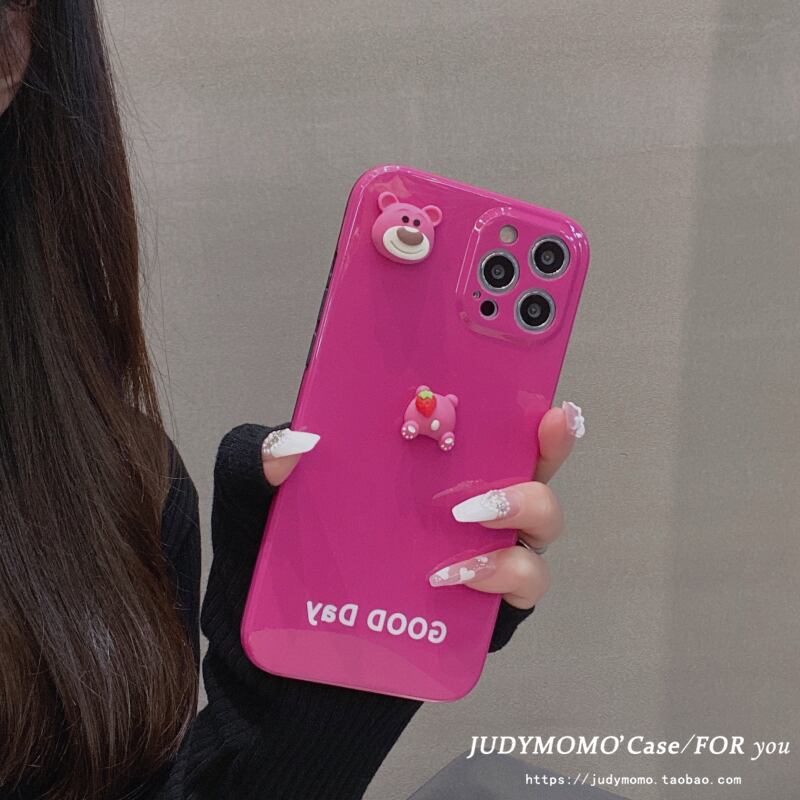 ins漫画かわいいクマ三次元ローズレッド適切なiPhone12アップル11proマックス携帯電話ケースxr / xソフト 大人ガーリー スウィート キュート カジュアル かわいい MOMO25037010948
