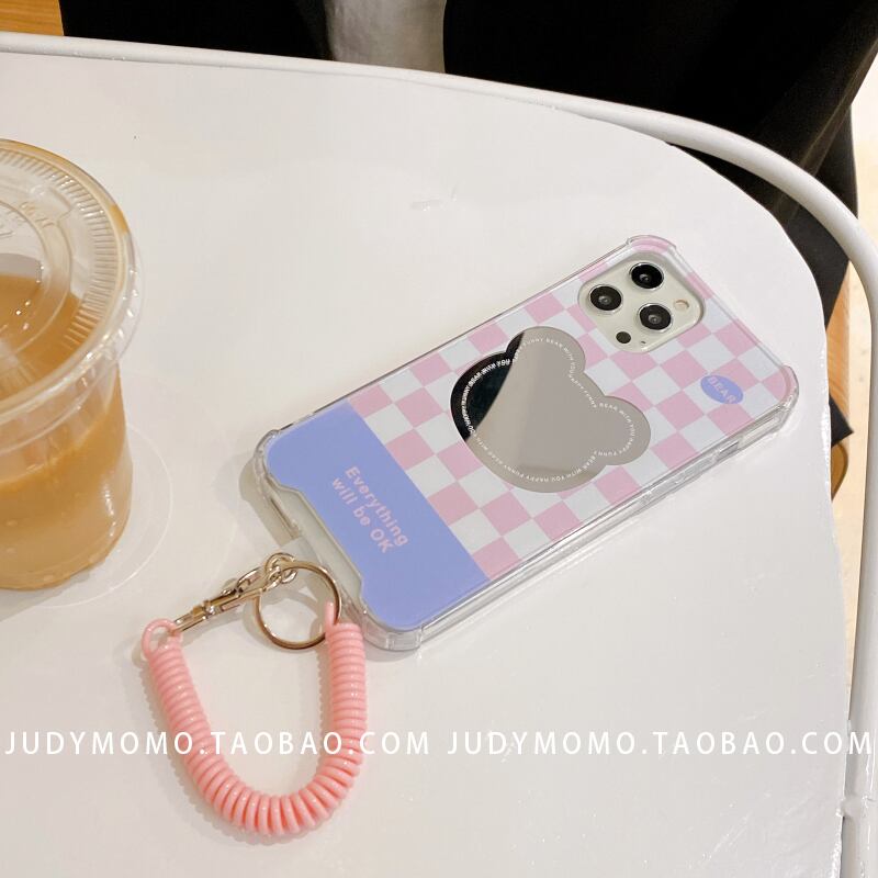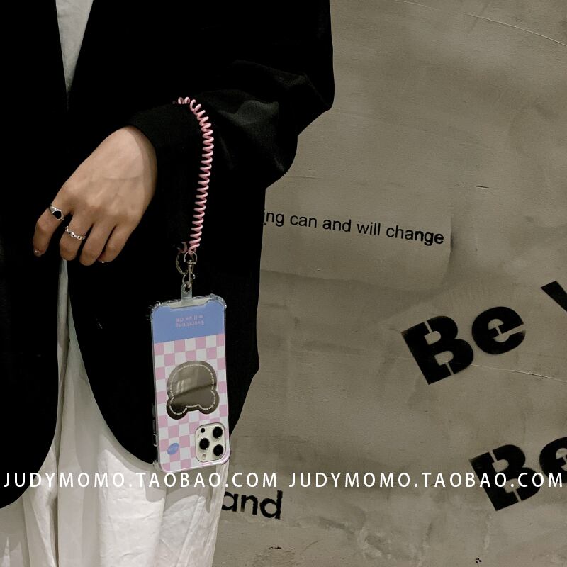 と韓国チェッカーボードピンククマiPhone12promax携帯電話シェル11アップルxrスプリングストラップ78p 春物 かわいい MOMO97937532489