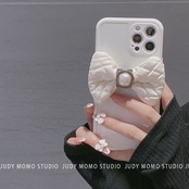 Temperamentホワイトレザーの女神の弓に適した12promax携帯電話ケースiPhone11Apple xs / xr / 8 soft リボン かわいい MOMO25972229708