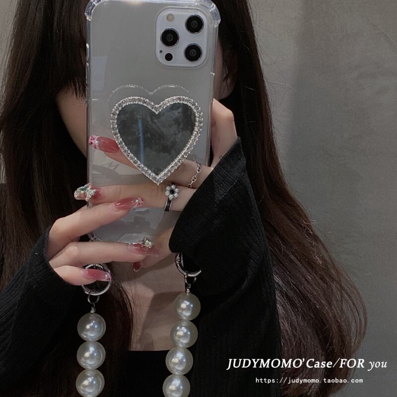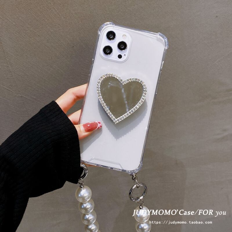 韓国のラブミラーラージパールチェーンに適した携帯電話ケースxr / x落下防止 真珠 韓国ファッション かわいい MOMO40924806927