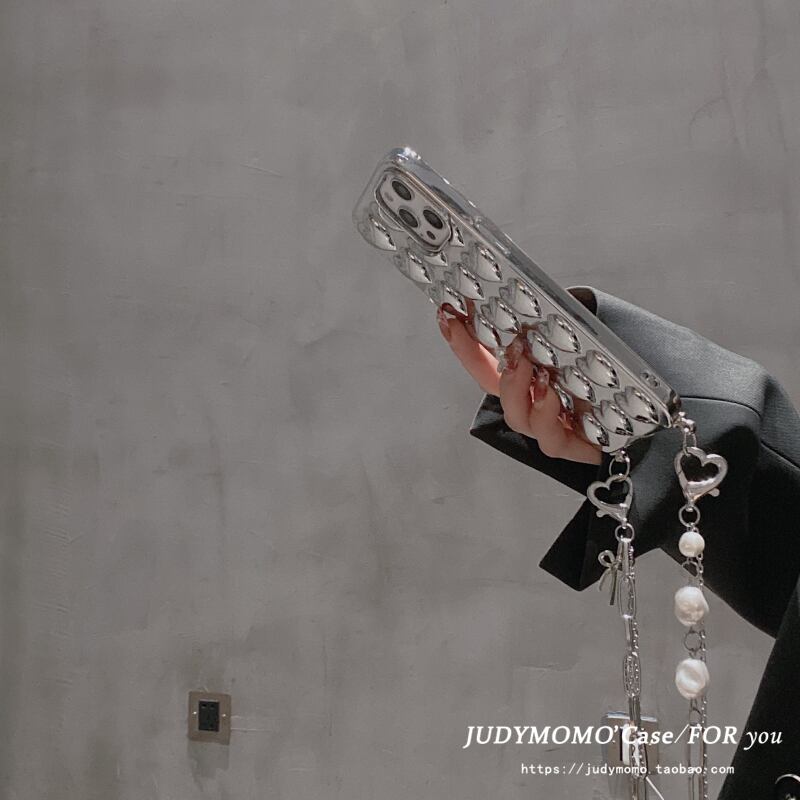 メッキシルバーラブクロスボディチェーンiphone12promaxアップル11携帯電話ケースxr / xsoft 8 銀 かわいい MOMO27509195541