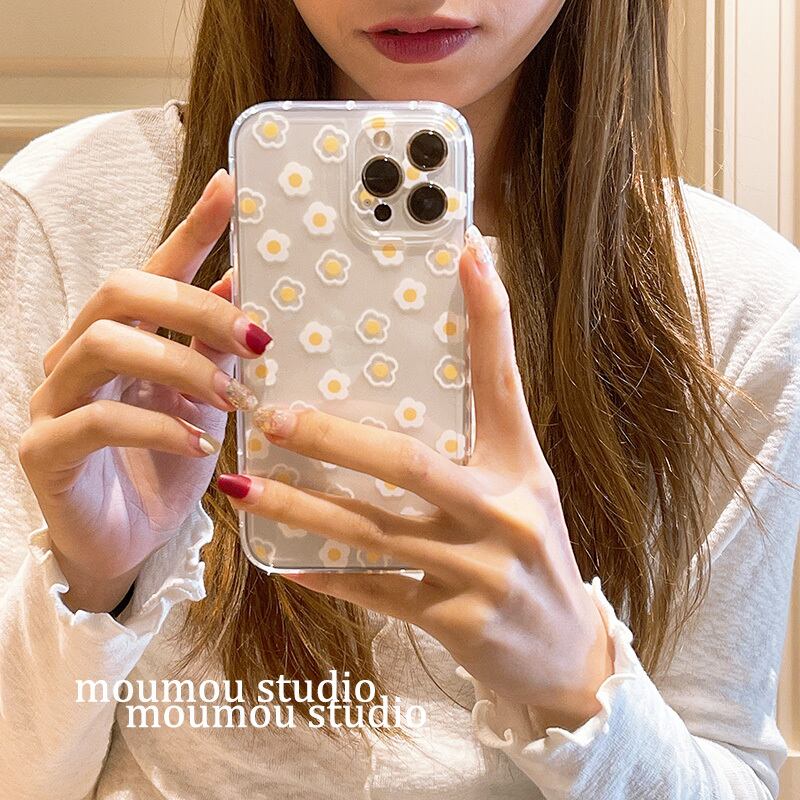 年乳白色の花透明適切なアップル11iphone12携帯電話ケース12proマックスシリコンケース7p / 8p ホワイト フラワーデザイン かわいいA MOMO_A80000974697