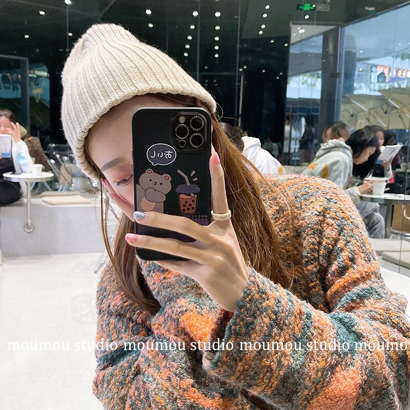 ミルクティーベア漫画に適したアップル11iphone12携帯電話ケース12promaxシリコンスリーブ7p / 8pを飲む かわいいA MOMO_A95516607616