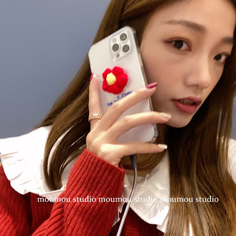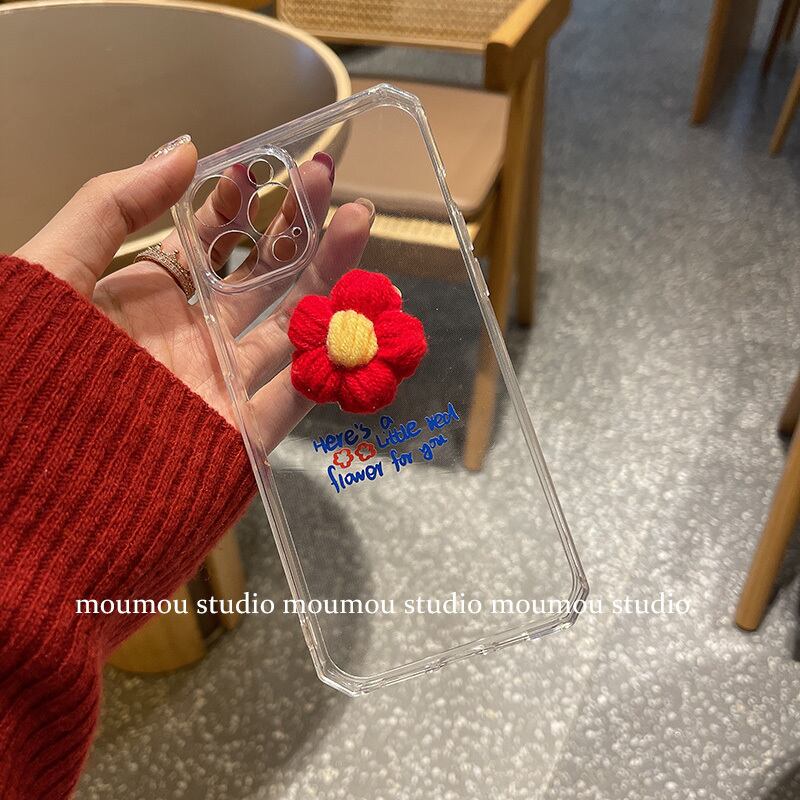 甘くてかわいいウール糸小さな赤い花に適したiphone12proマックスアップル11携帯電話ケースx / xs8plusxr レッド 大人ガーリー スウィート キュート カジュアル フラワーデザイン かわいいA MOMO_A33018091150