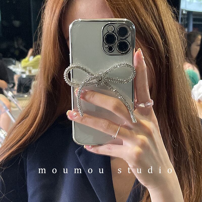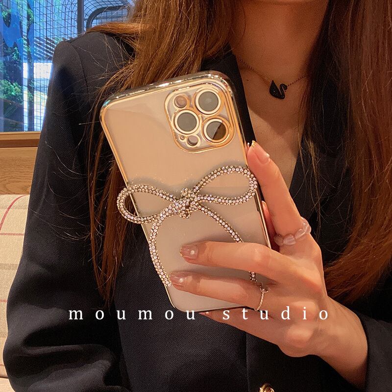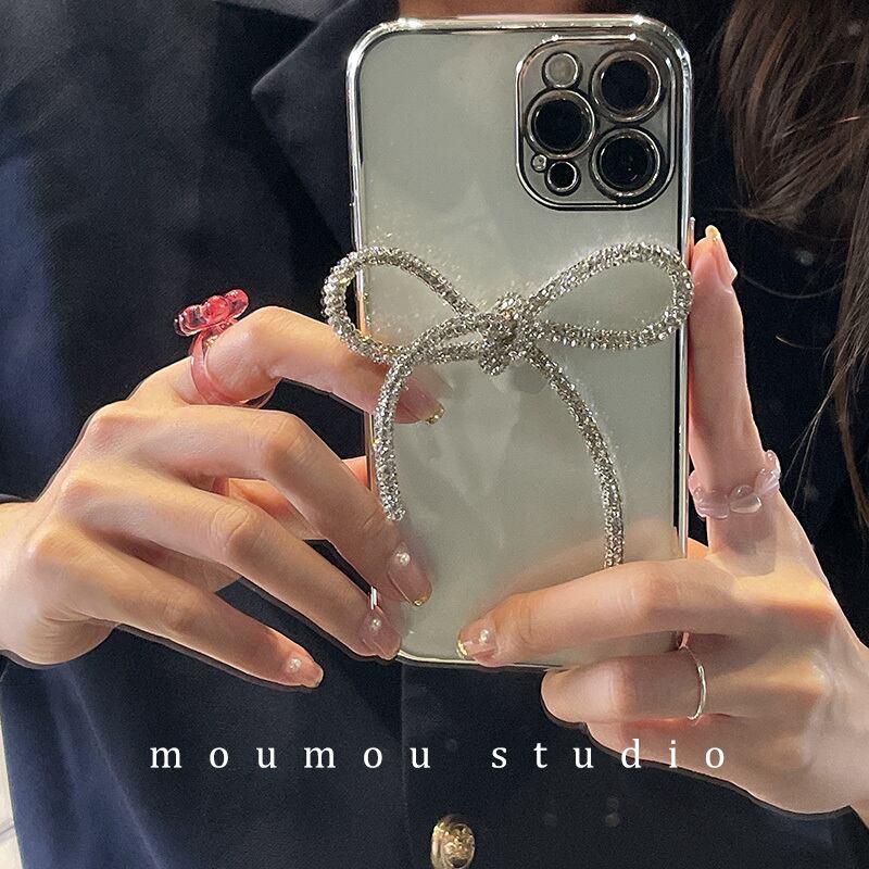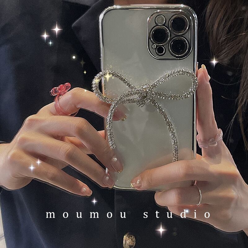 電気メッキフラッシュダイヤモンドボウに適した携帯電話ケース12promaxシリコンスリーブ7p / 8pメス リボン かわいいA MOMO_A48916573749