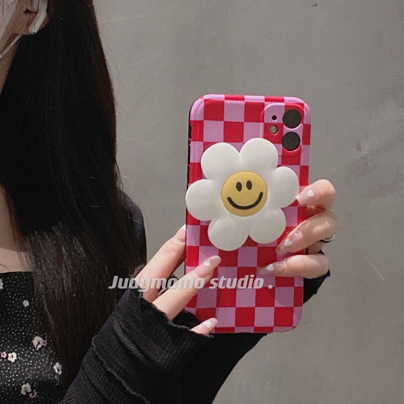 夏の真っ赤なグリッドフラワーブラケットに適したApple11promax携帯電話ケースiPhone12アンチドロップxr / 7p レッド 夏物 フラワーデザイン iphoneケース かわいい MOMO49892075311