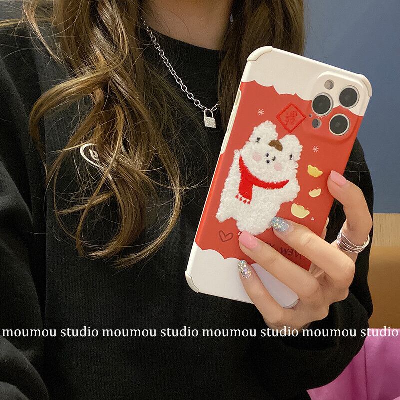 年赤リトルホワイトベアぬいぐるみ該当する12アップル11promax携帯電話ケースiphonexメス8pソフトxs / xr レッド かわいいA MOMO_A86826527506
