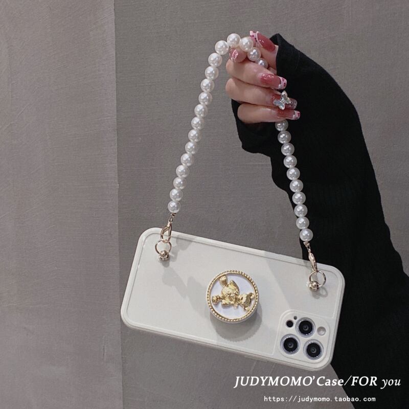 メタルベアスタンドパールチェーンに適した12promaxアップル11携帯電話ケースiphonex / xr soft 真珠 かわいい MOMO53821957496