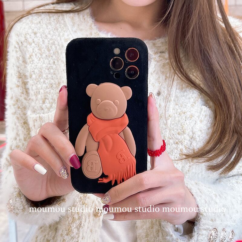 ぬいぐるみ三次元スカーフビッグベアに適したiphone12proマックスアップル11携帯電話シェルx / xs8plusxr かわいいA MOMO_A96660418295