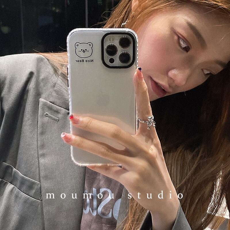 かわいいクマの頭の肖像画Apple12promax携帯電話ケースiphonex8plusソフト7pxr / 11 大人ガーリー スウィート キュート カジュアル かわいいA MOMO_A76016645017