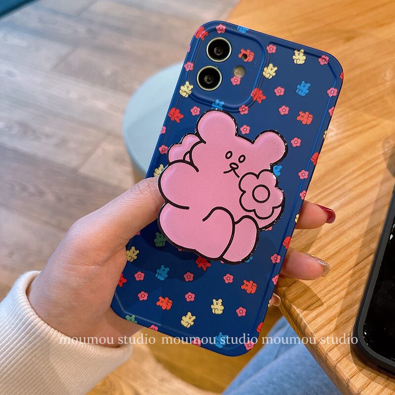insかわいいフラワーベアに適した12アップル11promax携帯電話シェルiphonexメス8pソフトxs / xrブラケット 大人ガーリー スウィート キュート カジュアル フラワーデザイン かわいいA MOMO_A86869771135