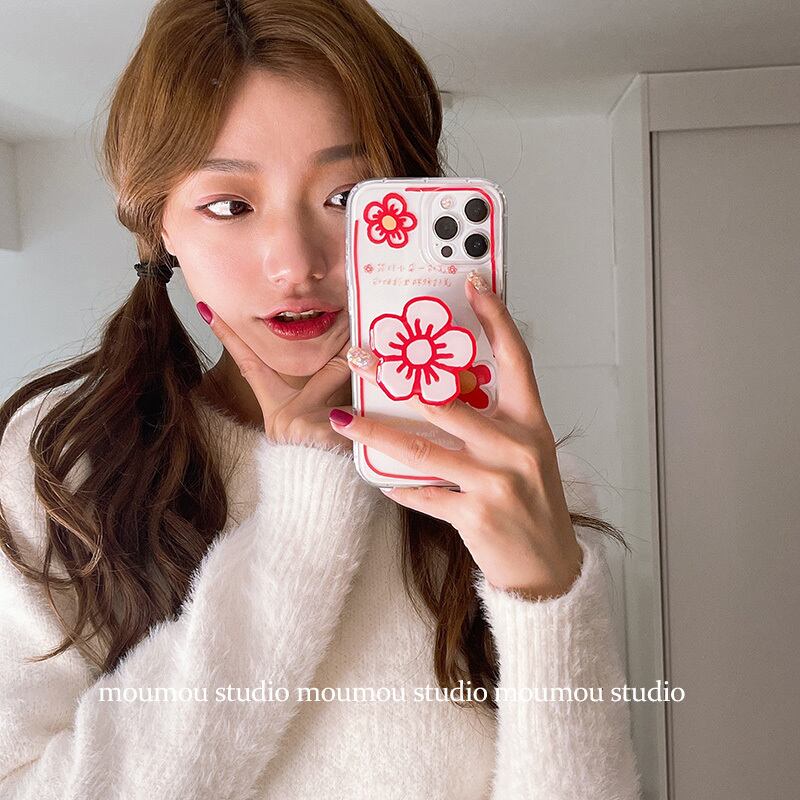 小さな赤い花12アップル11promax携帯電話ケースiphonex女性8pソフトxs / xrブラケット レッド フラワーデザイン かわいいA MOMO_A38455160783