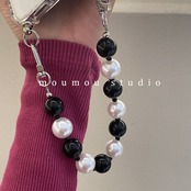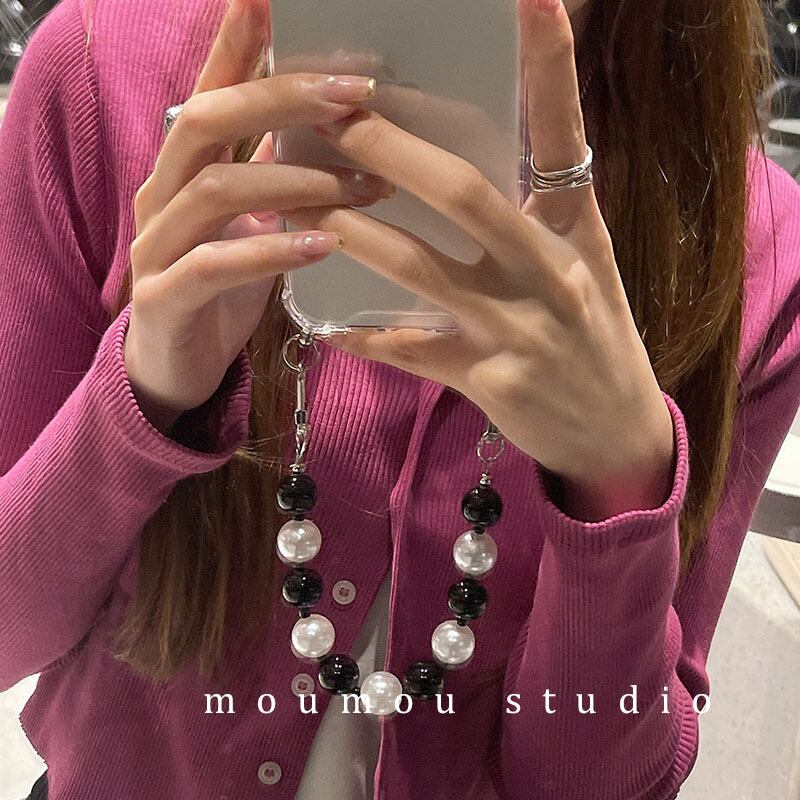 と韓国の黒と白のビーズチェーンに適した携帯電話ケース12promaxシリコンスリーブ7p / 8p ホワイト ブラック かわいいA MOMO_A73746685423