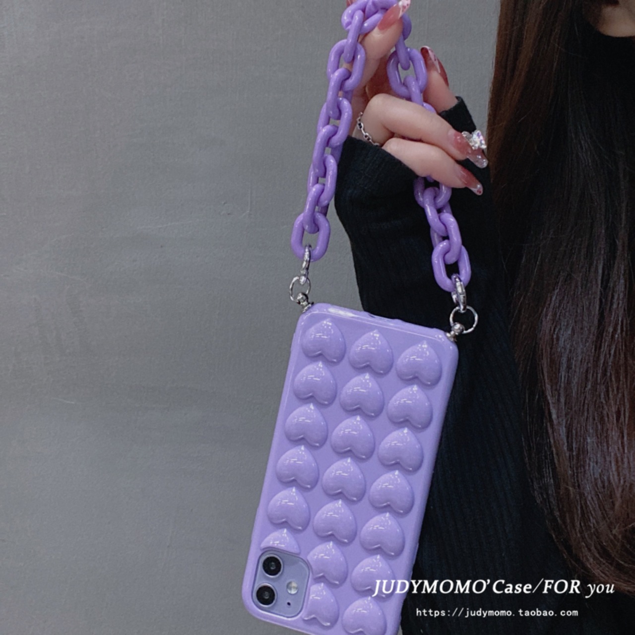 自家製優しい紫の三次元ラブチェーン12promaxアップルxr携帯電話ケースiphone11 パープル iphoneケース かわいい MOMO29160657727