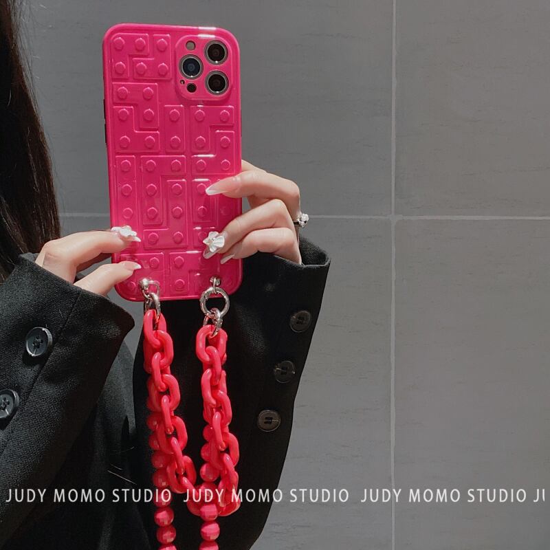 insニッチパーソナリティビーズチェーンに適した12promax携帯電話シェルアップル11蛍光ローズxr / xsソフト8 かわいい MOMO37940662370
