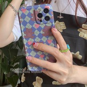 行儀の良い菱形の青いクマに適した携帯電話ケース12promax set 7p / 8p ブルー かわいいA MOMO_A40819819749