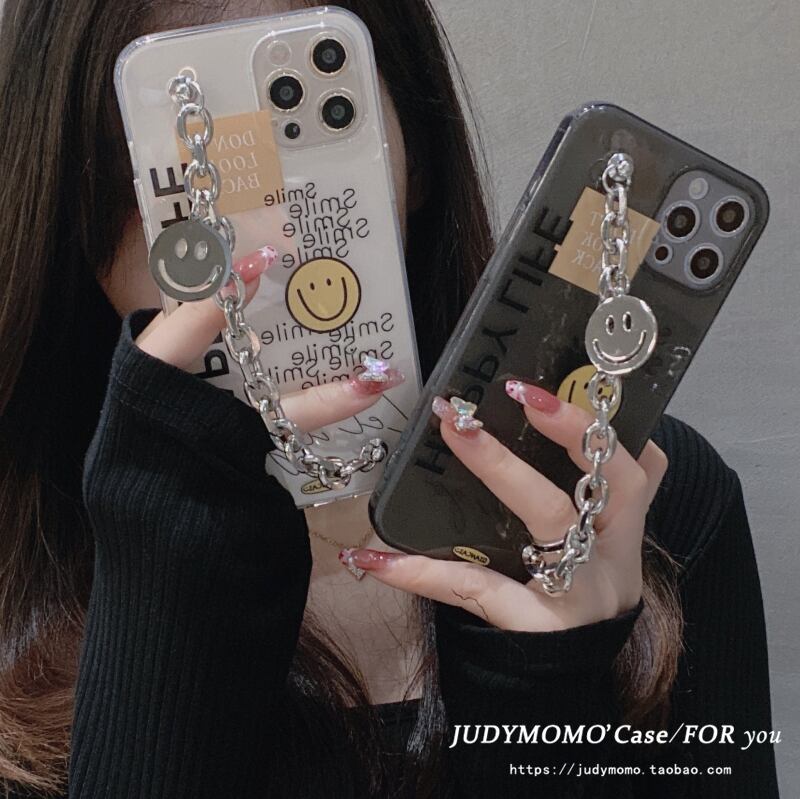 パーソナリティコールドメタルスマイリーフェイスチェーン携帯電話ケースiphone12アップル11proマックスシリコンxrカップル8 かわいい MOMO85189130543