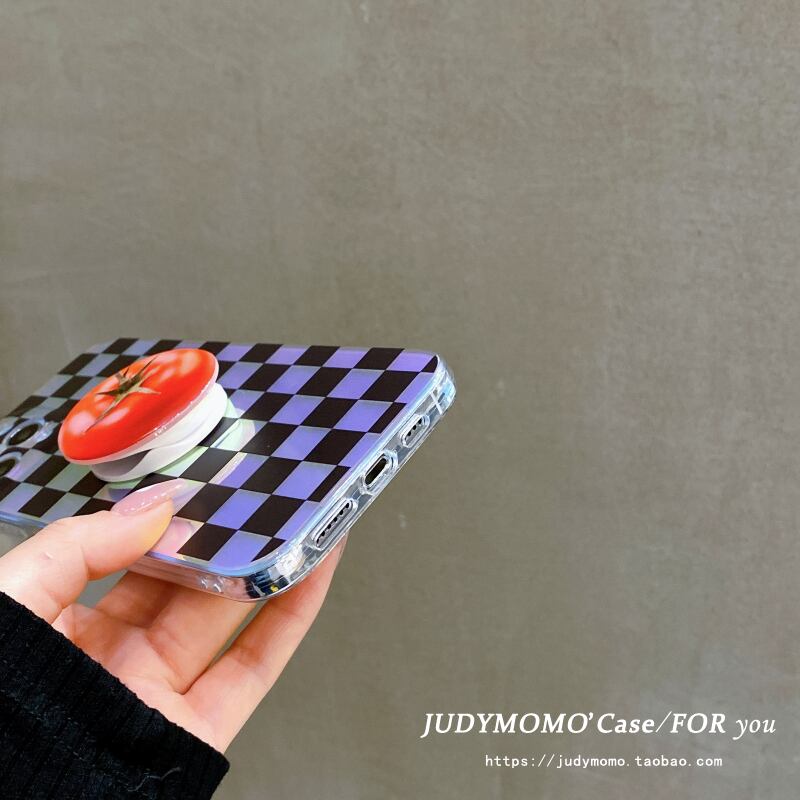 insカラフルな格子トマトスタンドiphonexアップル12promax携帯電話シェル11シリコン78p かわいい MOMO6911462865