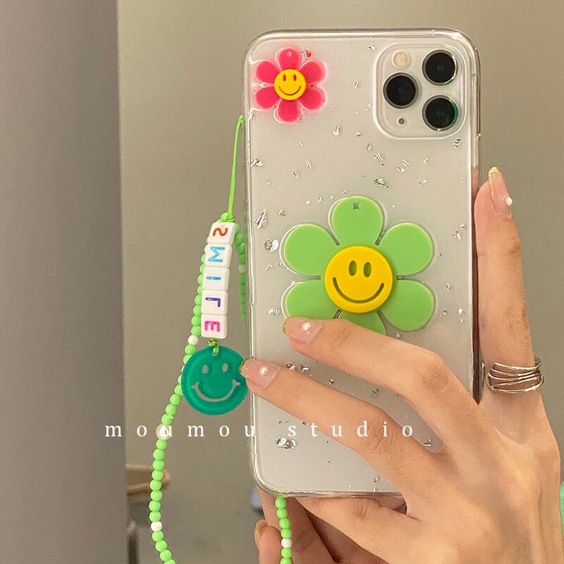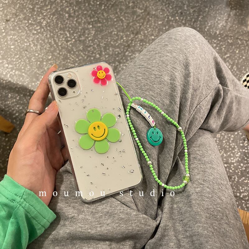 スマイリービーズヒマワリに適した携帯電話ケース12promaxシリコンスリーブ7p / 8pハンギングチェーン フラワーデザイン かわいいA MOMO_A32316158910
